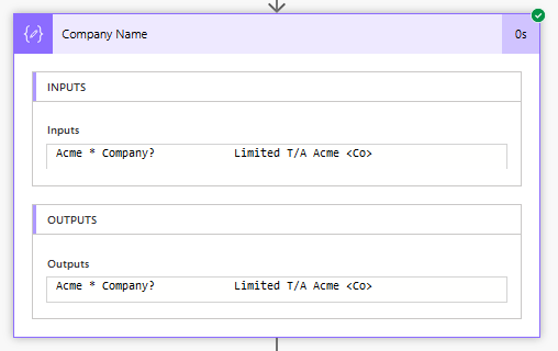 Within the loop, we have a Compose action and place strCompanyName in it. The reason for this is you can’t set a variable using the same variable within the input expression: We need to temporarily store it first.