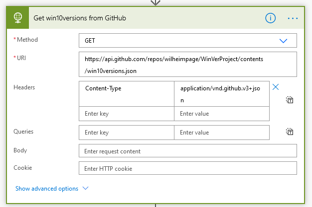 Anyway, GET that. I’ve used the GitHub API here because I need the sha hash of the file blob which the GitHub API needs to update the file contents later, and they conveniently provide this in the response instead of having to calculate it yourself.