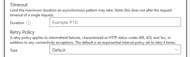 Retry policy is useful when you’re making a lot of API calls and they sometimes fail due to being rate limited/throttled. Writing a lot of rows into a SQL database in an Apply to each loop for example, when you set the concurrency of the loop right up to 50.