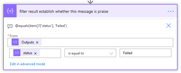 Next we want to filter this array for the action that failed. Add a Filter array action: