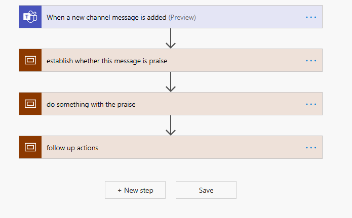 Here is a flow for capturing praise in Teams. I’ve blogged about this here. There is no error handling in this flow, but it is divided into 3 main sections by using scopes: