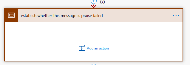 Now I rename it to exactly the same name as the parent scope but with the word failed at the end. This is more of a Logic Apps thing: If you have a lot of scopes, you can build up one error handling scope, and as long as the scope name and the names of all the actions within it contain the parent scope name exactly, you can copy the code into a text editor, do find and replace of the scope name with the next one (substituting spaces with underscores) and paste it back it and it’ll automagically appear in the right place with the correct run-after etc. This is Power Automate so it’s no so important but I do it anyway.