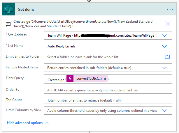 I love living New Zealand except the fact midnight UTC is smack bang in the middle of the day here, so we have to perform these time zone gymnastics to get the start of the working day from a data source that works in UTC. If you’re within a few hours of UTC your own expression can be much simpler, because who cares when your cutoff point is, as long as it’s kind of overnight.