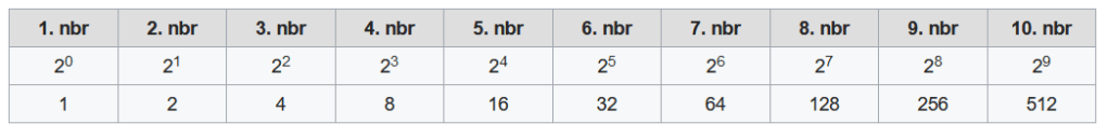To get this number we do 2 ^ Value where Value is the number in the sequence from 0 to 9: