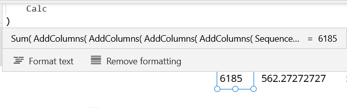 The next thing is to multiple the code/number represented by Code2 in the table above with the base 2 exponent of the Value, which is the Sum1 Column. So do another AddColumns() to create a column called Calc, which is Code2 * Sum1: