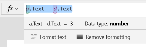 You can put this whole formula into a label twice but for the sake of the application performance, we’ll split it out into labels and work with their .Text property outputs: