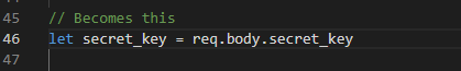 In this case you would provide the secret key as a property of a JSON object in your HTTP request body called “secret_key” and this code puts that in a variable, instead of reading it out the Postman environment.