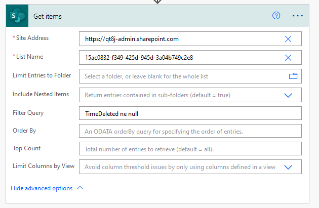 So there you go – easily access a list of deleted sites in SharePoint from Logic Apps and Power Automate. If you need to do this via the REST API, either v1 or Graph, just treat it as a normal list, but if using Graph, add $expand=fields to the URL as a query parameter and filter for deleted with fields/TimeDeleted ne null
